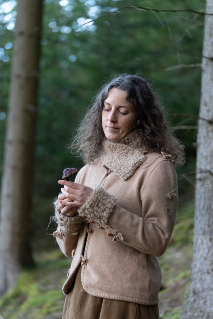 Alles begann mit einem besonderen Geschenk: Chaga-Tee von einem Freund. Als die Künstlerin ihn aufkochte und sein wunderbar erdiger Duft das Haus erfüllte, hatte sie das Gefühl, dieser Pilz bringe den gesamten Wald in ihr Zuhause. Eine fast heilige Atmosphäre breitete sich aus – still und gegenwärtig.